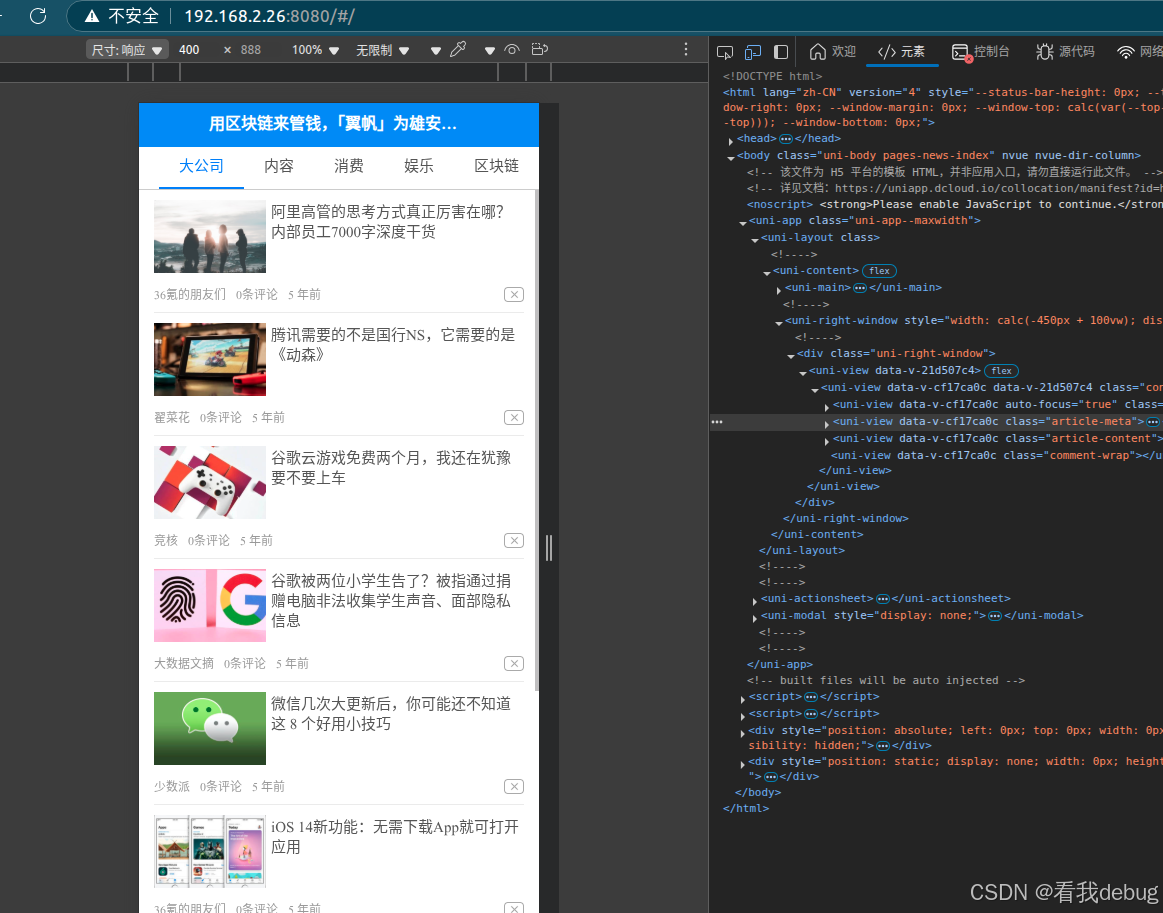 H5:VS Code 自带调试工具或 Chrome 调试。