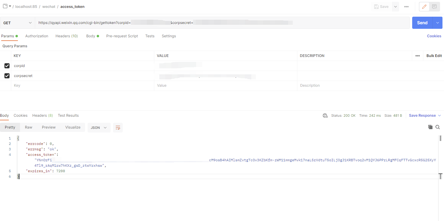 请求URL:https://qyapi.weixin.qq.com/cgi-bin/gettoken?corpid=ID&corpsecret=SECRET