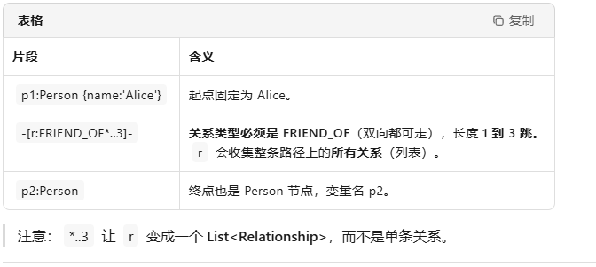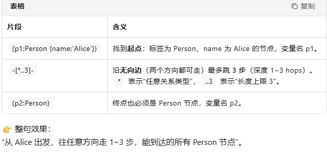 MATCH (p1:Person {name: 'Alice'})-[r:FRIEND_OF*..3]-(p2:Person)