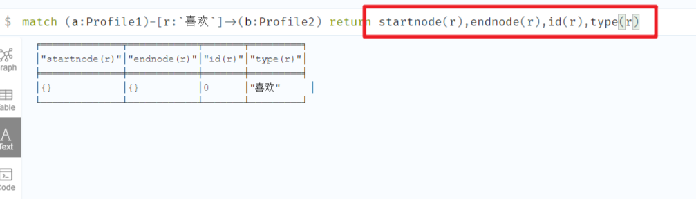 RETURN <relationship-label-name># 检索关系节点的详细信息: