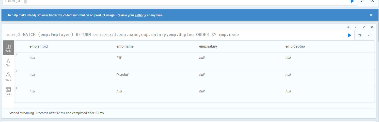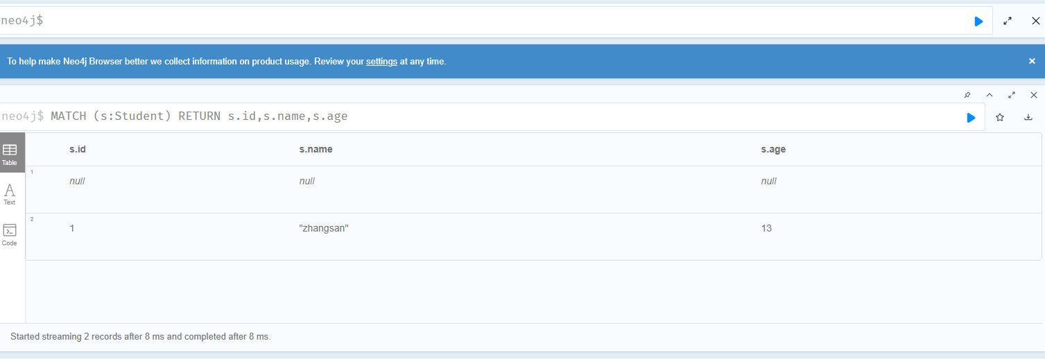 MATCH (s:Student) RETURN s-- 或者直接返回属性