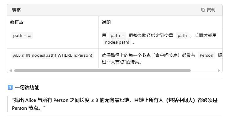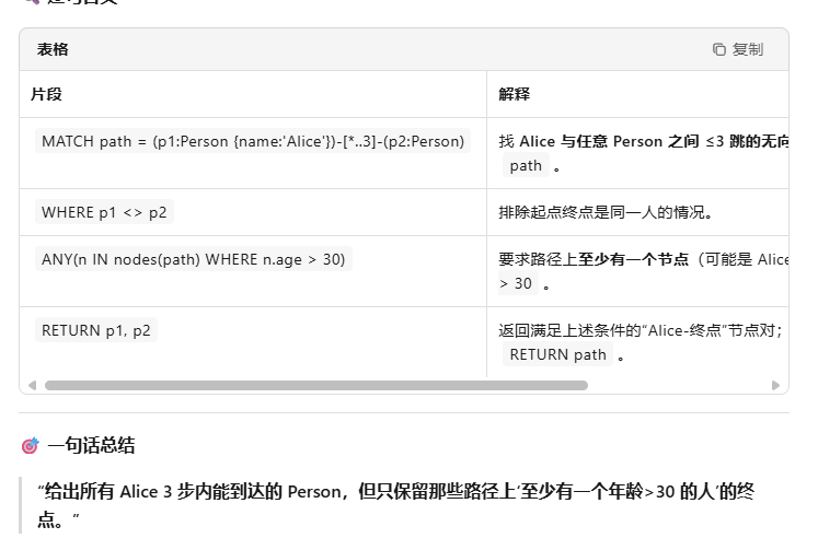 你可以结合变量长度路径和过滤条件来查找更复杂的间接关系。例如,你想找到 Person 节点之间的间接关系,并且路径中某个节点具有特定属性: