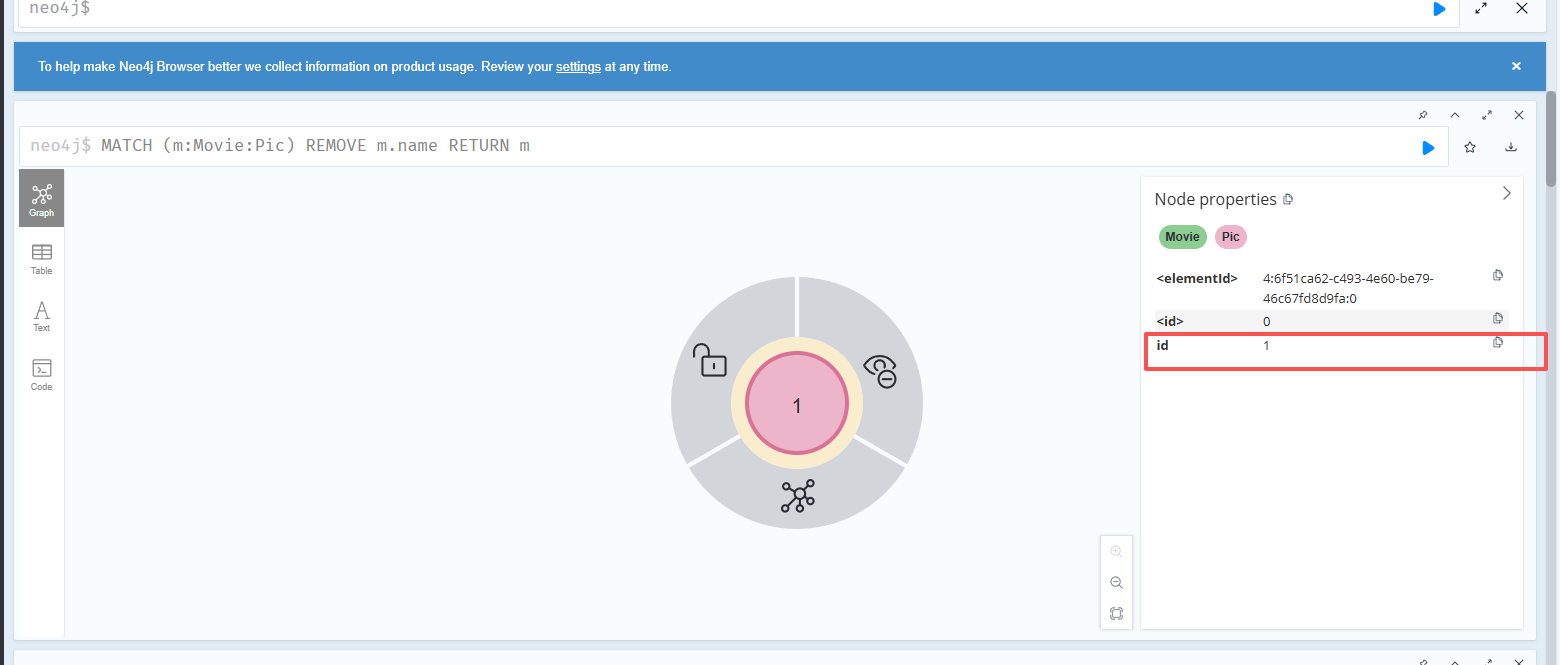 CREATE (m:Movie:Pic {id:'1', name:"test"})
