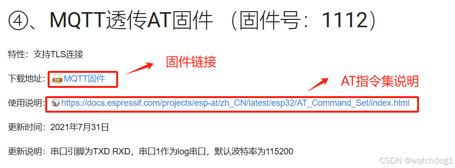 2)直接选择固件号:1112 的MQTT固件,下载,以及在线阅读AT指令集(友情提示:该固件,只支持基础AT指令、WIFI --AT指令、MQTT --AT指令集,不支持HTTP指令,尝试过POST或GET请求均失败)