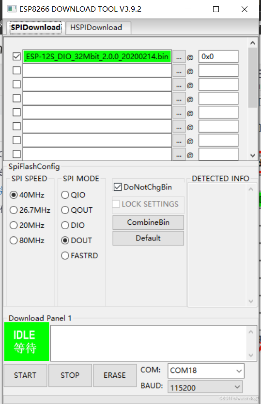 1、点击ESP-DOWNLOAD_TOOL的Start,"IDLE等待,变为等待上电"