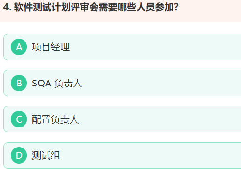 SQA负责人(B):质量保证负责人需要从质量管理的角度评估测试计划是否完整、合理,能否有效保证软件质量。