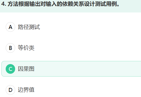 因果图是通过分析输入条件(原因)和输出结果(结果)之间的依赖关系来设计测试用例的方法,最适合根据输出对输入的依赖关系设计测试用例。因果图能够清晰地展示输入条件之间的组合关系以及它们对输出结果的影响。