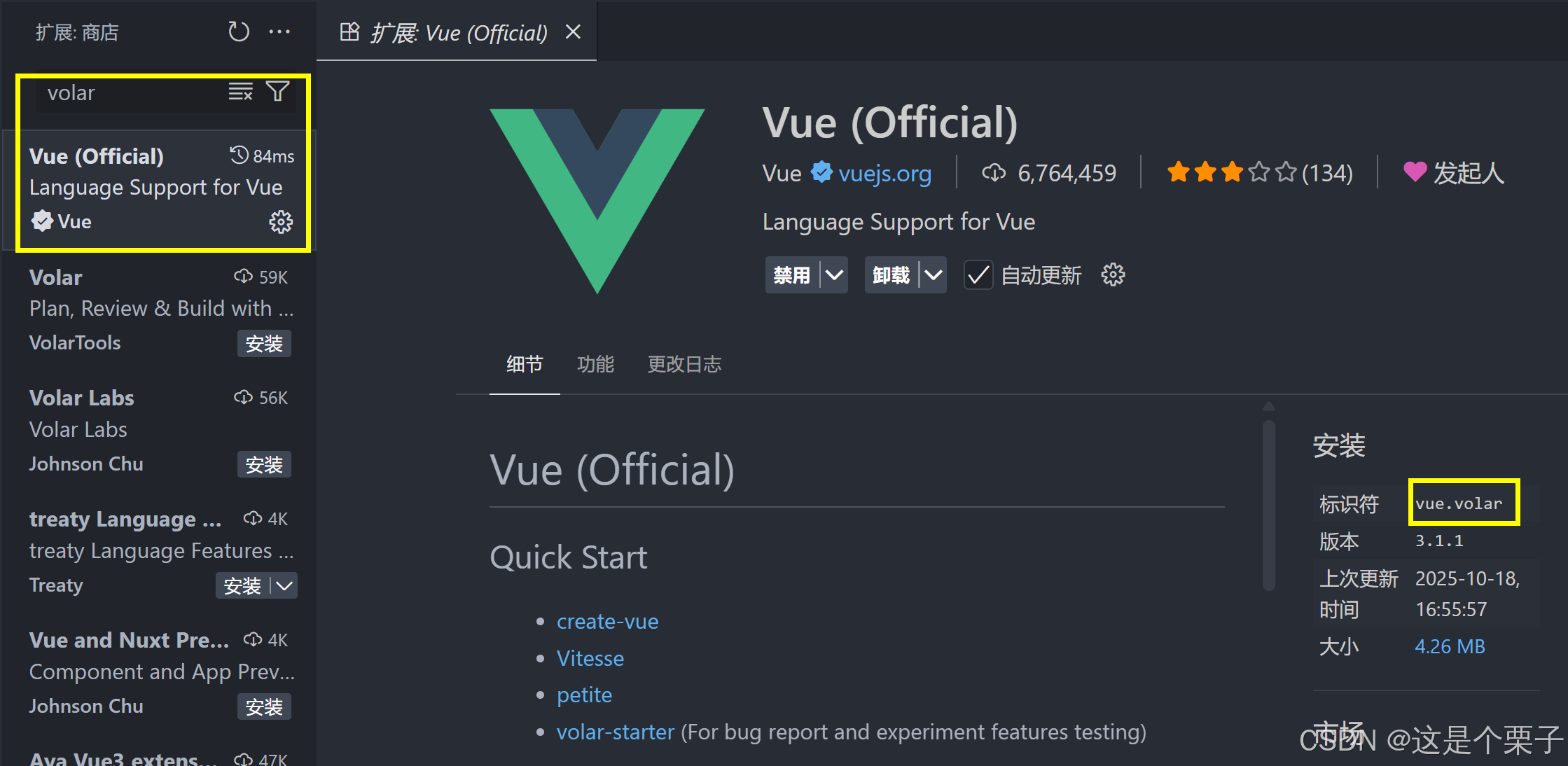 Vue3 项目中需要暂时禁用一下 Vue2 插件 Vetur: