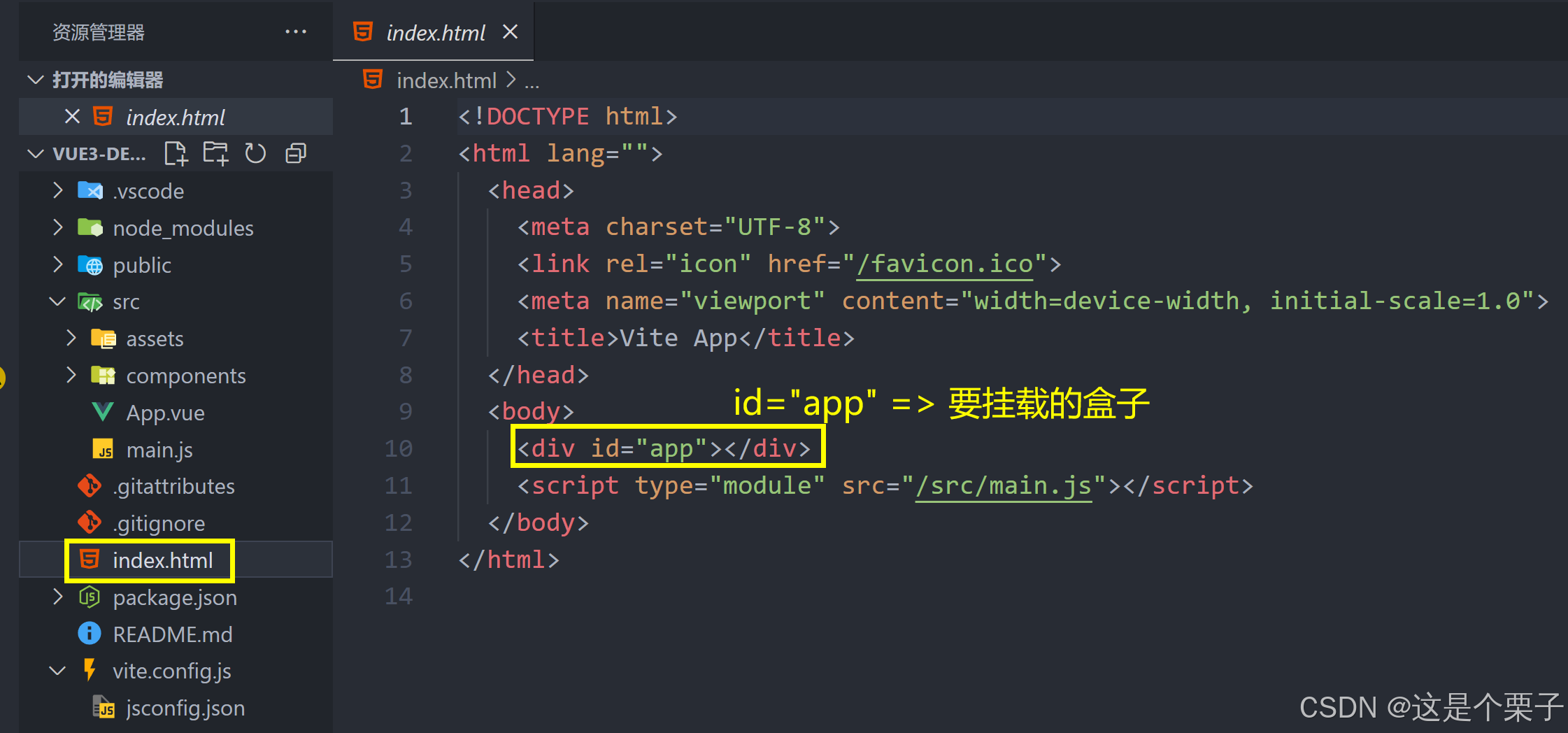 5. index.html - 单页入口 提供 id 为 app 的挂载点