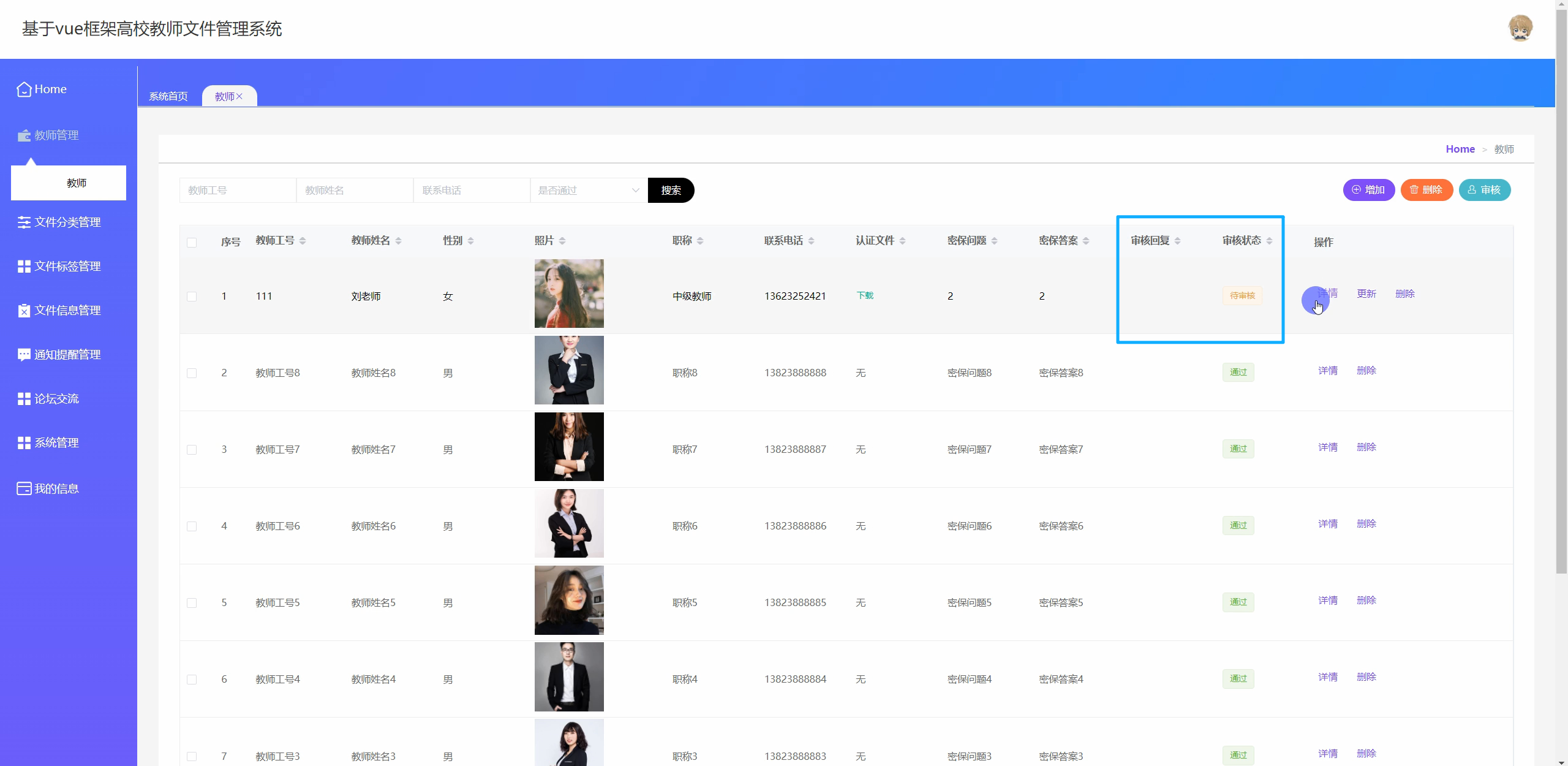 基于Vue的高校教师文件管理系统7h274l7n(程序+源码+数据库+调试部署+开发环境)带论文文档1万字以上,文末可获取,系统界面在最后面。