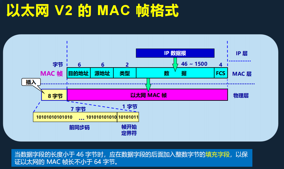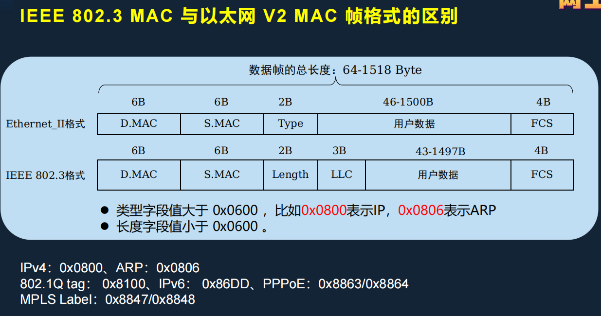 MAC帧的格式常用的以太网 MAC 帧格式有 2 种标准: