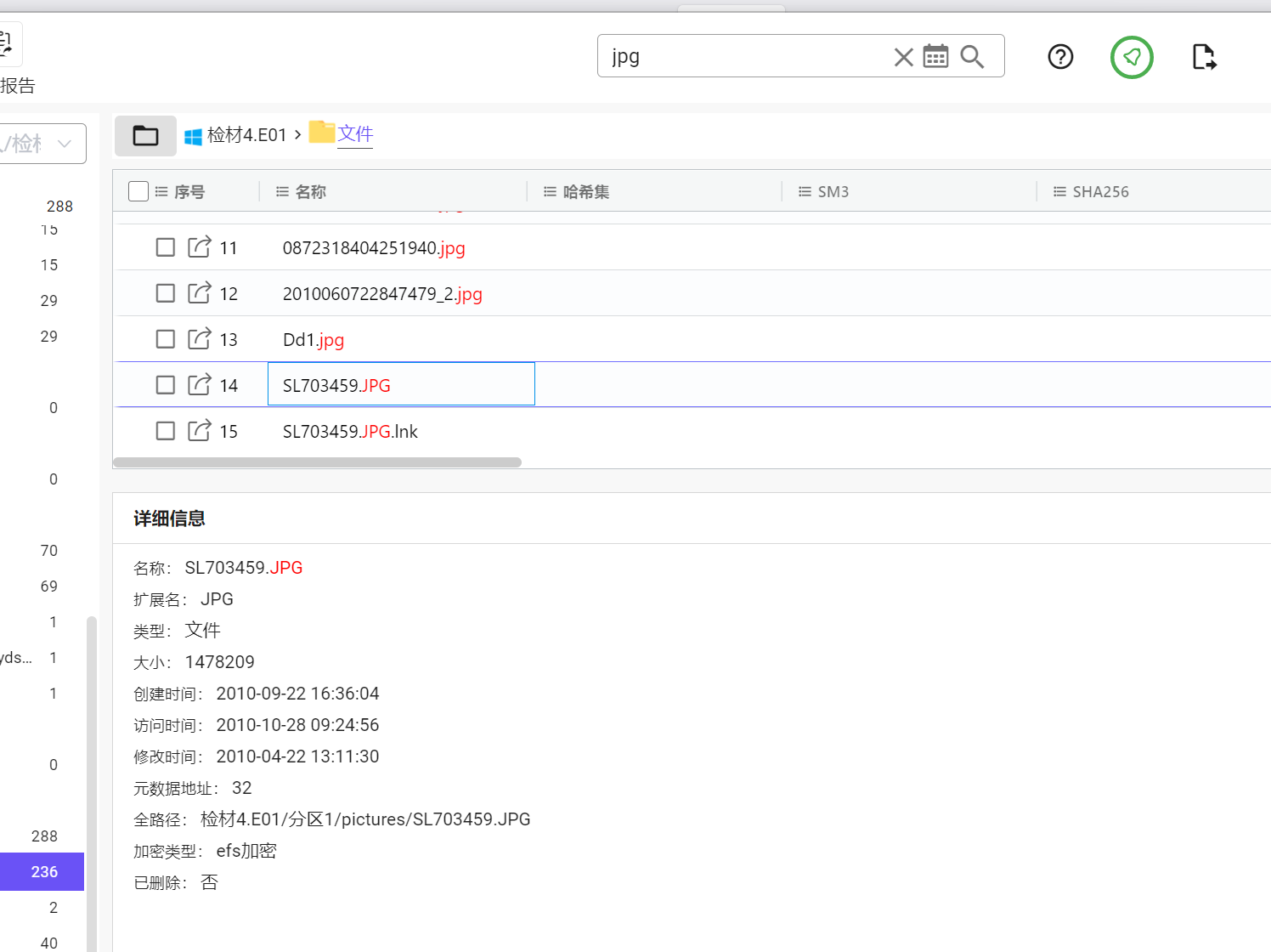 分析检材中加密的jpg文件,并以该文件的文件名作为flag提交