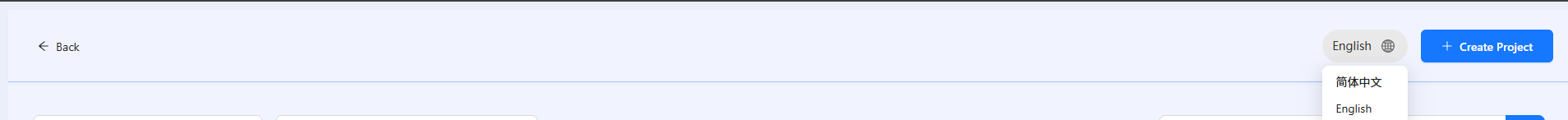 import { useTranslation } from 'react-i18next';const HomePage = () => {const { t, i18n } = useTranslation();const changeLang = (lang) => {i18n.changeLanguage(lang); // 切换语言('en' 或 'zh')};return (<div className={styles['page-header']}><div className={styles['header-content']}><Buttontype="text"icon={<ArrowLeftOutlined />}onClick={handleBack}className={styles['back-button']}>{t('back')}</Button><div className={styles['right-actions']}><Dropdownmenu={{items: [{key: 'zh',label: '简体中文'},{key: 'en',label: 'English'}],onClick: ({ key }) => {changeLang(key);}}}placement="bottomRight"><div className={styles.languageSwitcher}><span className={styles.currentLang}>{i18n.language === 'zh' ? '简体中文' : 'English'}</span><div className={styles.langIcon}><GlobalOutlined /></div></div></Dropdown><Buttontype="primary"icon={<PlusOutlined />}onClick={() => setModalVisible(true)}className={styles['create-button']}>{t('createProject')}</Button></div></div><div className={styles['divider-line']}></div></div>)