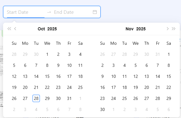 <ConfigProvider locale={currentLang === 'zh' ? zhCN : enUS}><DatePicker.RangePickersize="large"value={timeFilter}onChange={handleTimeChange}placeholder={[t('startDate'), t('endDate')]}className={styles['time-filter']}/></ConfigProvider>效果