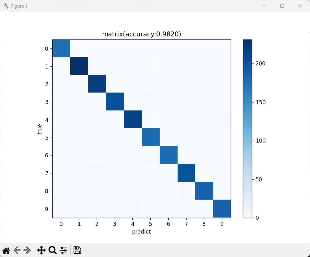 ③测试预测:对2000个测试数据分类,看看这些图片是0~9哪个数字。