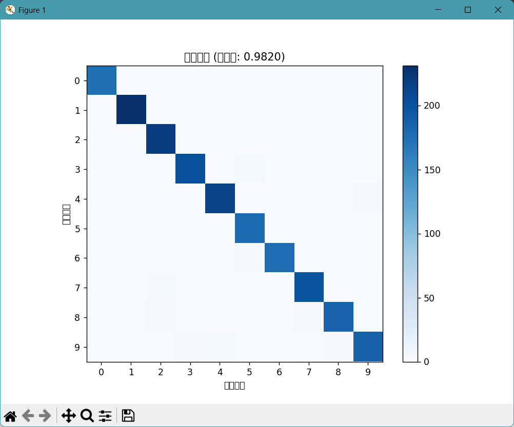 混淆矩阵直观展示哪些数字容易被混淆(如 4 和 9、3 和 5,因形状相似)