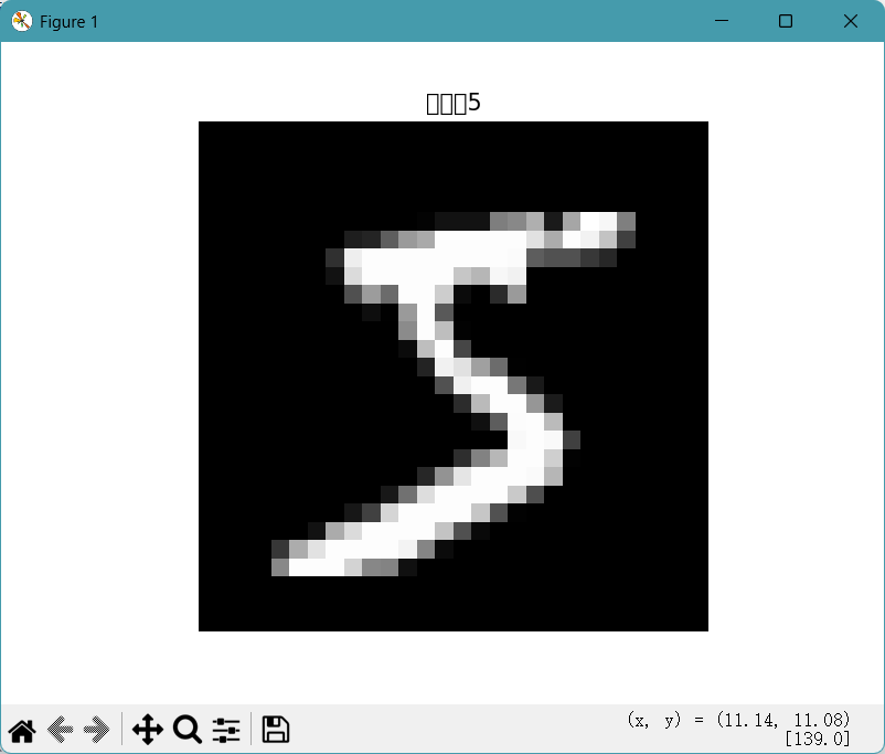 plt.show()显示绘制的图像窗口,执行后会弹出一个窗口展示第一张 MNIST 图像及对应标签。