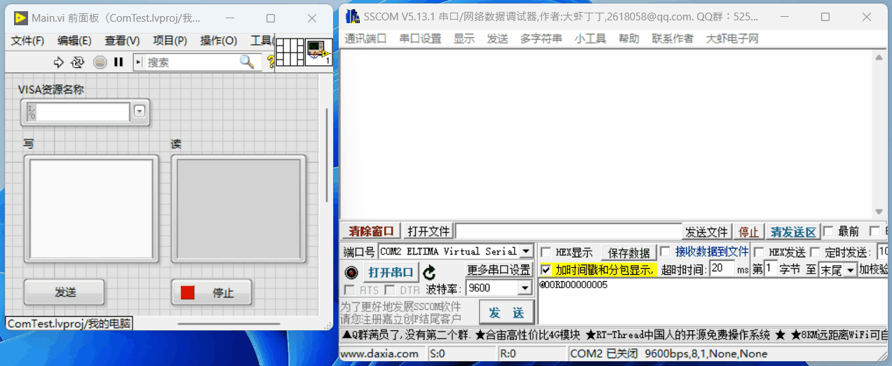 本节编写了一个串口通信程序,可以与串口调试助手进行通信,执行如下: