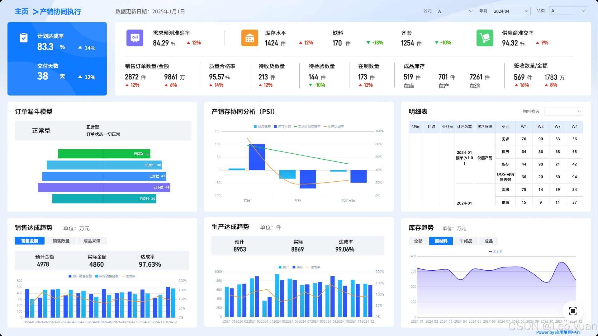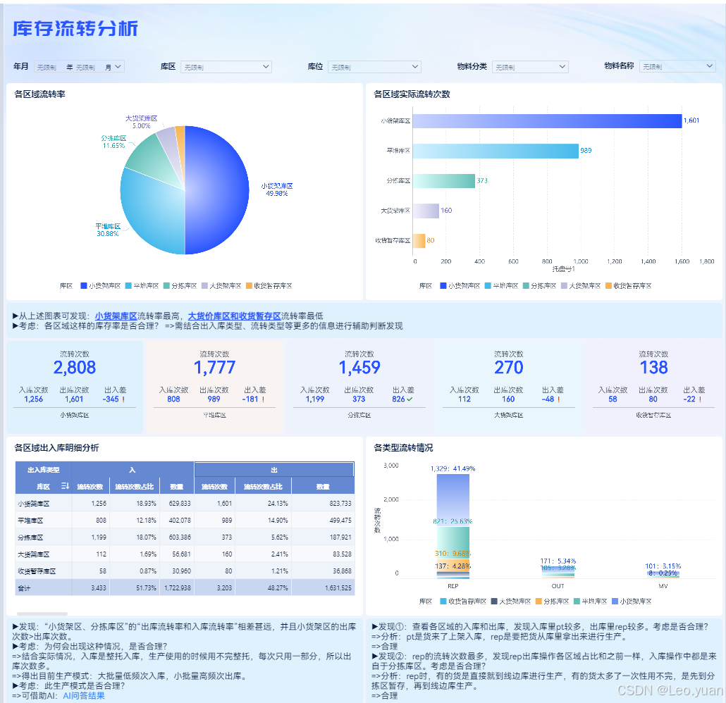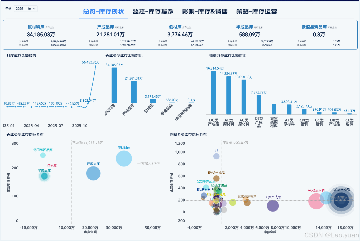 我们可以利用数据集成工具,比如我这里用FineBI来搭建库存管理分析看板图,把每个模块拆解之后就很清楚了,你看下图的原材料、半成品这些数据是不是就很清晰?我把这份模板链接放在这里,大家可以上手试试。需要自取:https://s.fanruan.com/f8rnq(复制到浏览器打开)