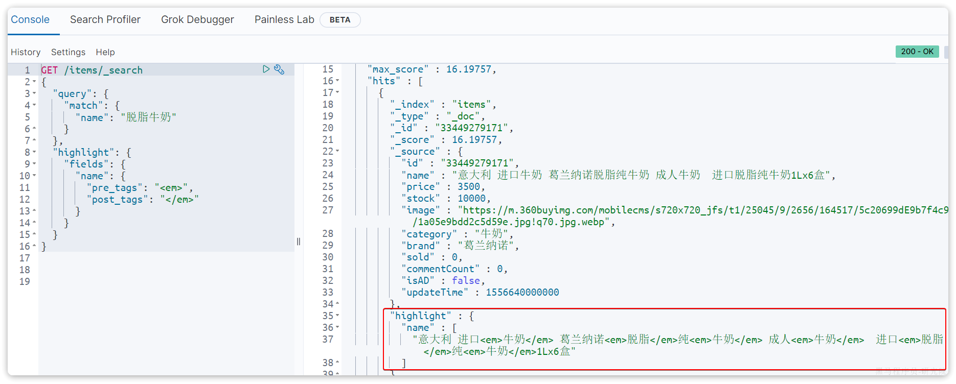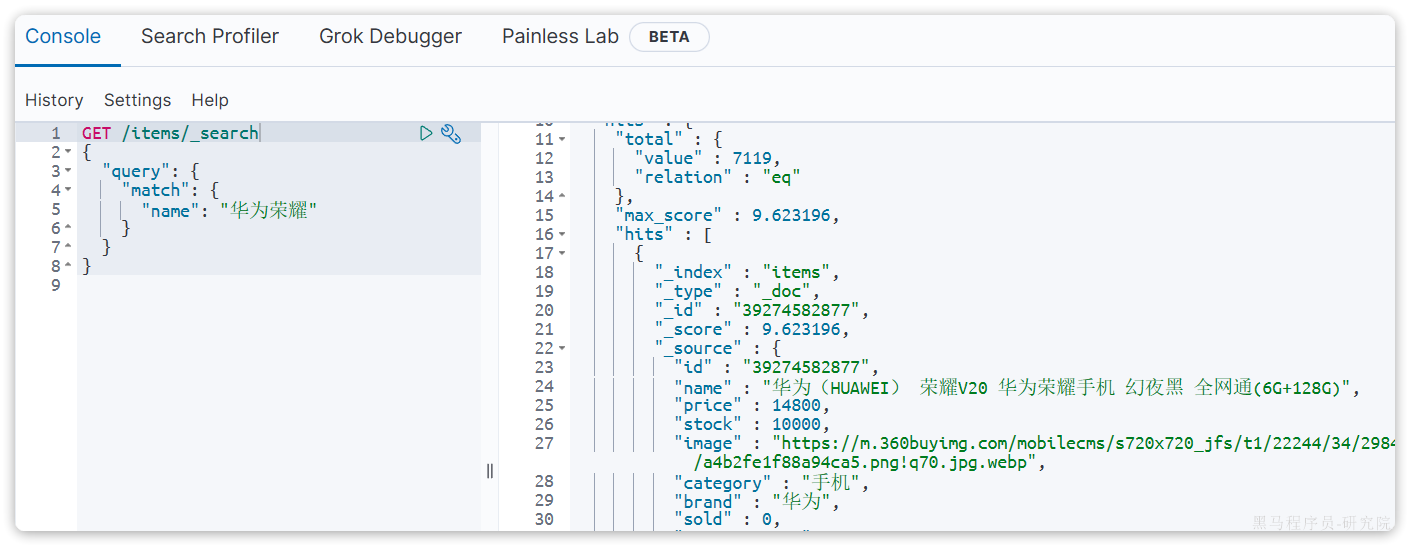 你会发现虽然是match_all,但是响应结果中并不会包含索引库中的所有文档,而是仅有10条。这是因为处于安全考虑,elasticsearch设置了默认的查询页数。