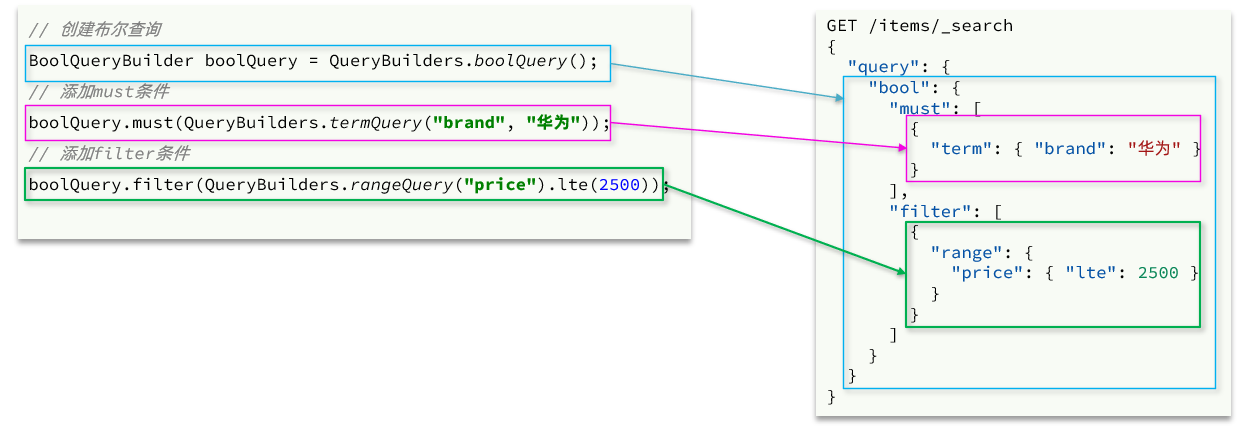 不过聚合条件的要利用AggregationBuilders这个工具类来构造。DSL与JavaAPI的语法对比如下: