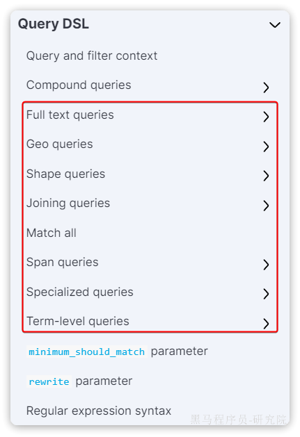 叶子查询的类型也可以做进一步细分,详情大家可以查看官方文档: