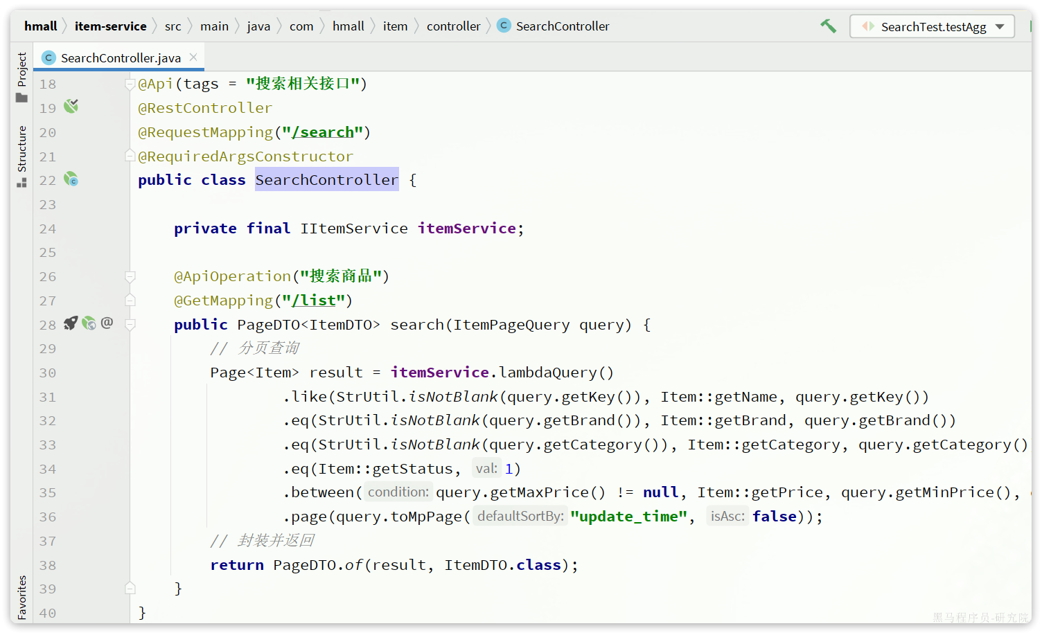 请求参数可以参考原本item-service中com.hmall.item.controller.SearchController类中的基于数据库查询的接口: