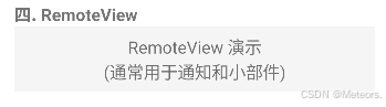 RemoteViews是Android中一种特殊的视图结构,它允许应用程序在其他进程(通常是系统主屏幕进程)中显示和更新界面。主要用于: