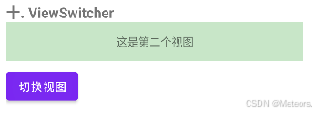 <ViewSwitcherandroid:id="@+id/viewSwitcher"android:layout_width="match_parent"android:layout_height="50dp"android:layout_marginBottom="8dp"><TextViewandroid:layout_width="match_parent"android:layout_height="match_parent"android:gravity="center"android:text="这是第一个视图"android:background="#FFCDD2" /><TextViewandroid:layout_width="match_parent"android:layout_height="match_parent"android:gravity="center"android:text="这是第二个视图"android:background="#C8E6C9" /></ViewSwitcher>