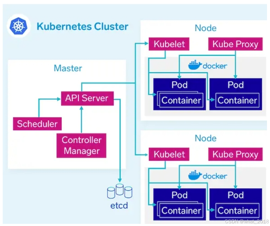 Master中,包含负责提供API服务的组件kube-apiserver;作为后台数据库的etcd,监听组件kube-scheduler;运行控制器的组件kube-controller-manager。