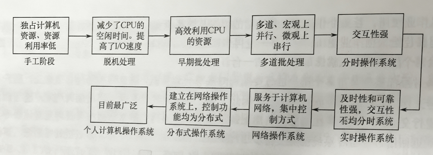 个人计算机操作系统是目前使用最广泛的操作系统,它广泛应用于文字处理、电子表格、游戏中,常见的有 Windows、Linux 和 MacOS 等。操作系统的发展历程如图所示。