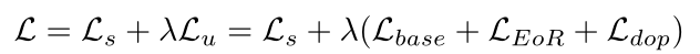 我们有两个无监督损失: 分类一致性:它使用 Jenson-Shennon 散度 (JSD) 最大限度地减少教师预测 tcls 和学生预测 scls 之间的差异,以及 定位一致性:使用 MSE 计算教师 (tloc,tlocEoR) 和学生 sloc 定位地图之间每一帧的像素级差异。最后,稳定平均教师的总体损失定义为