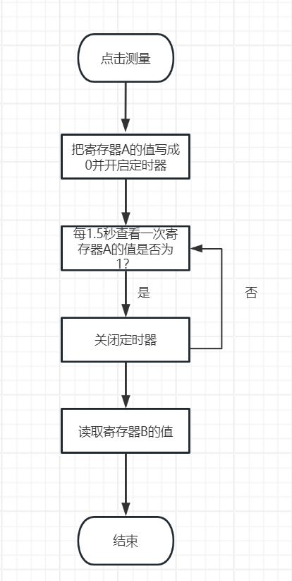 需求:有一个"测量"按钮,按下测试按钮的时候通过串口方式把寄存器A的值写成0,并开启定时器读取寄存器A的值,当寄存器A的值是1的时候,读取另外一个寄存器B的值,显示在页面中