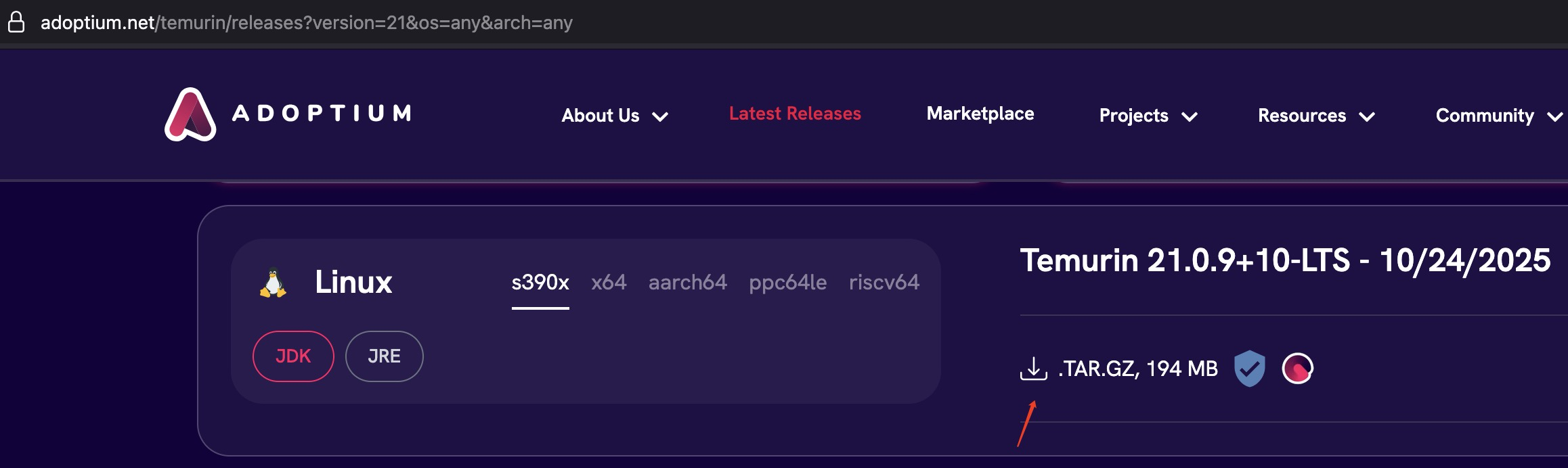 https://adoptium.net/temurin/releases?version=21&os=any&arch=any这里需要通过浏览器点击下载对应版本