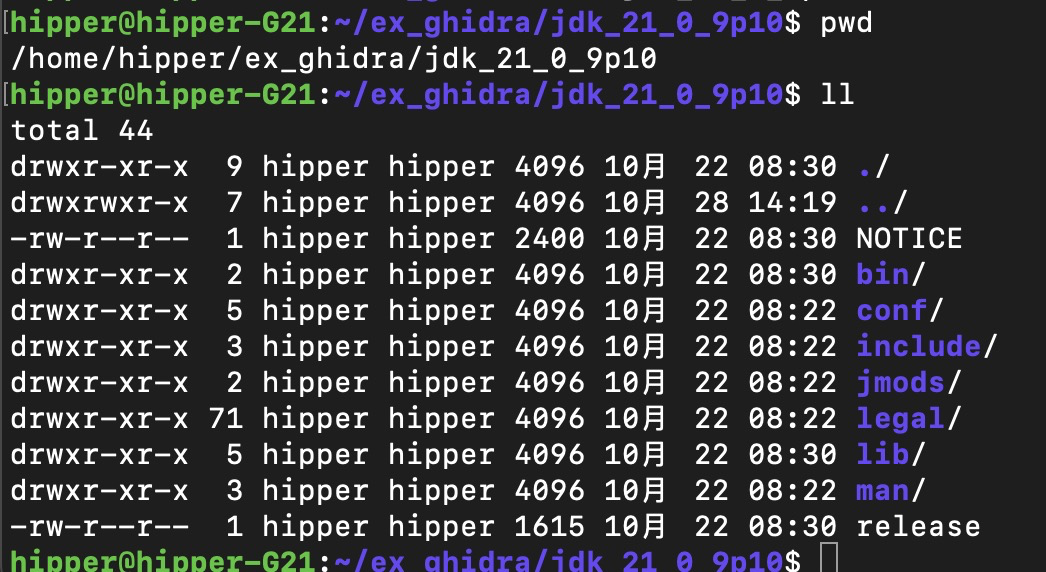 本机器是:/home/hipper/ex_ghidra/jdk_21_0_9p10