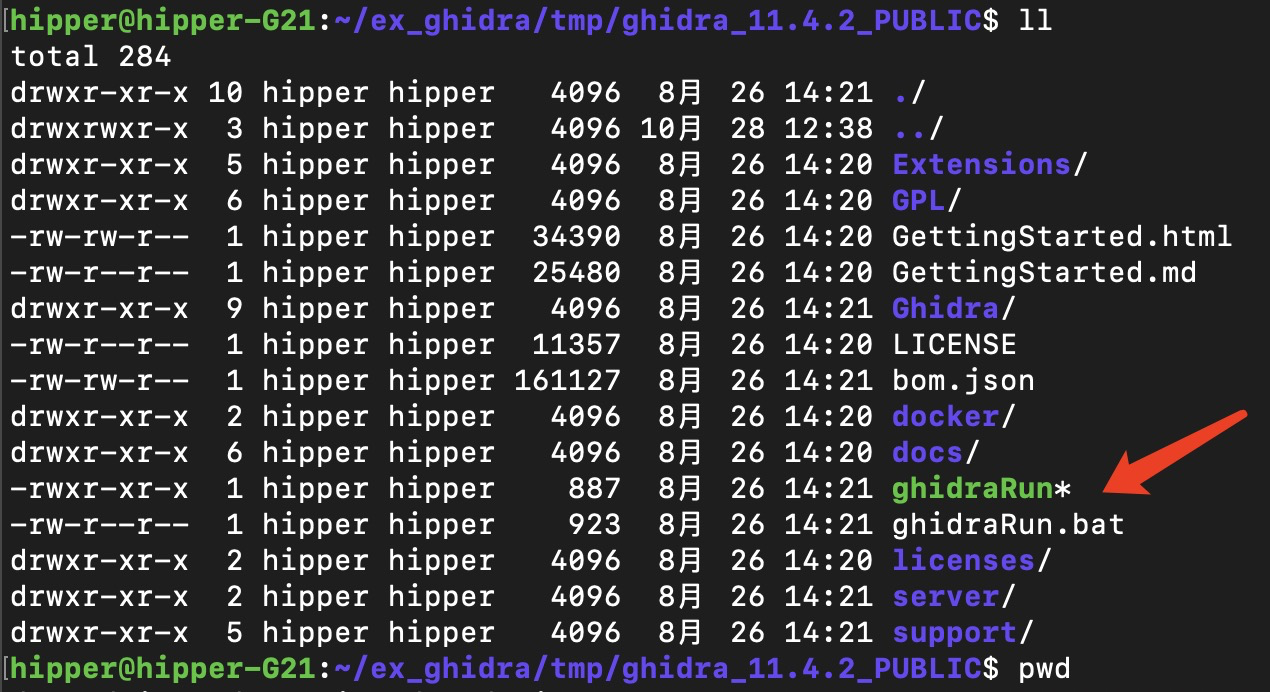 wget https://github.com/NationalSecurityAgency/ghidra/releases/download/Ghidra_11.4.2_build/ghidra_11.4.2_PUBLIC_20250826.zip解压:
