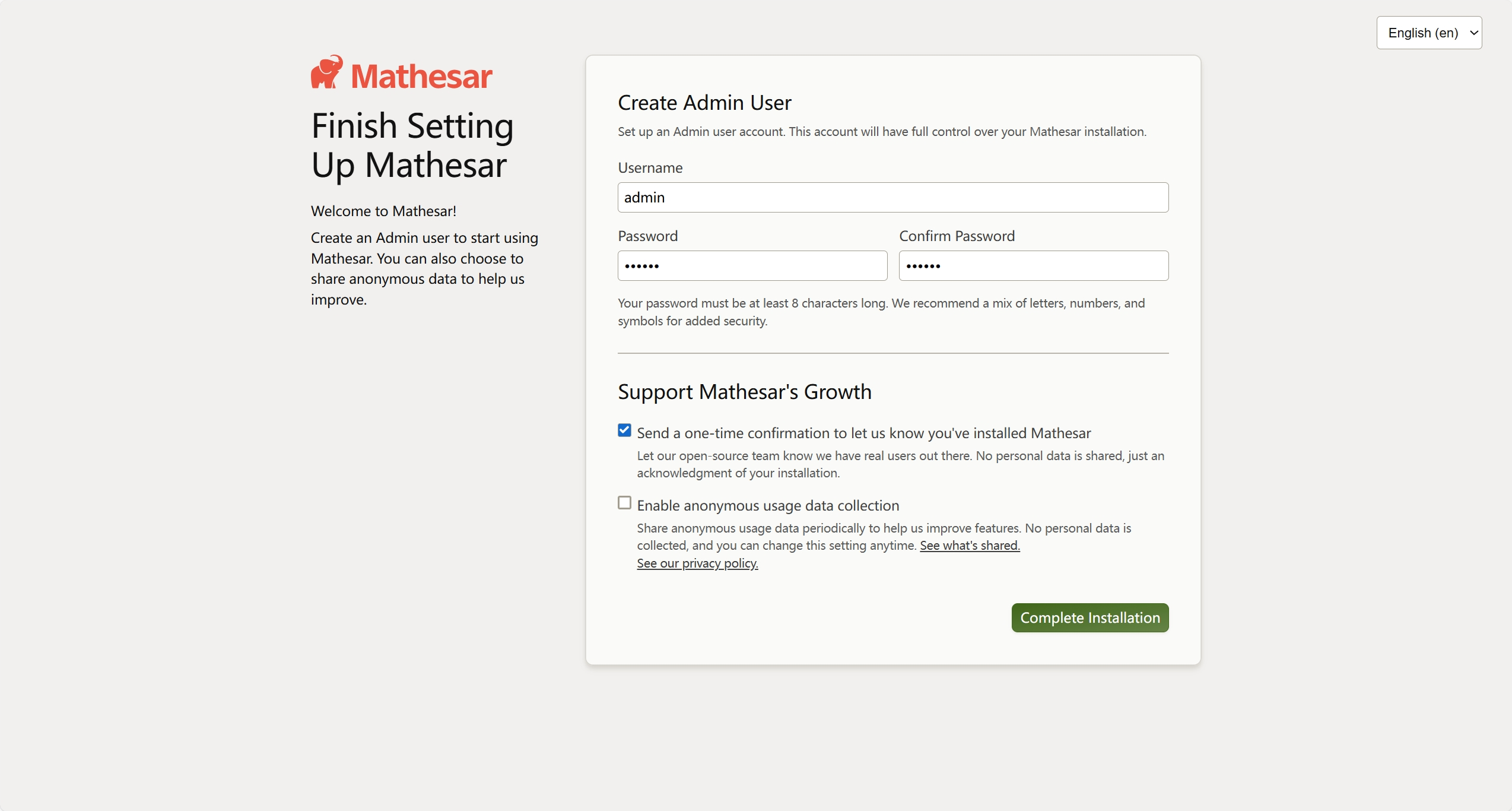 docker run -it --name mathesar -p 8000:8000 mathesar/mathesar:latest