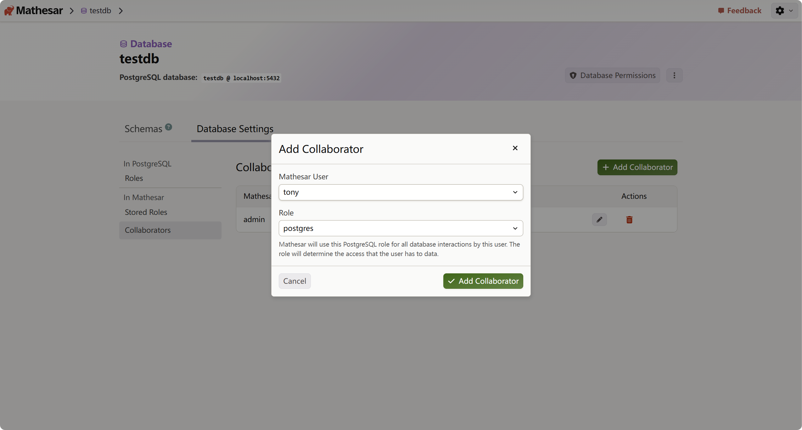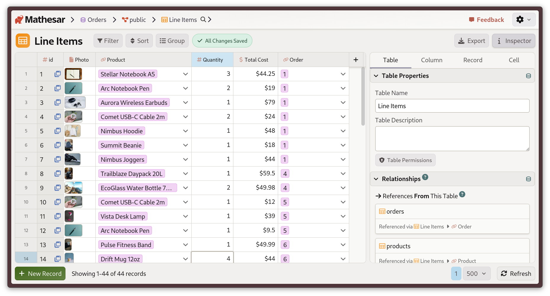 Mathesar 不但继承了 PostgreSQL 内置的 ACID 事务、数据完整性(主键、外键等)、高性能、强大的数据类型等优势,同时还依赖 PostgreSQL 数据库权限进行访问控制。