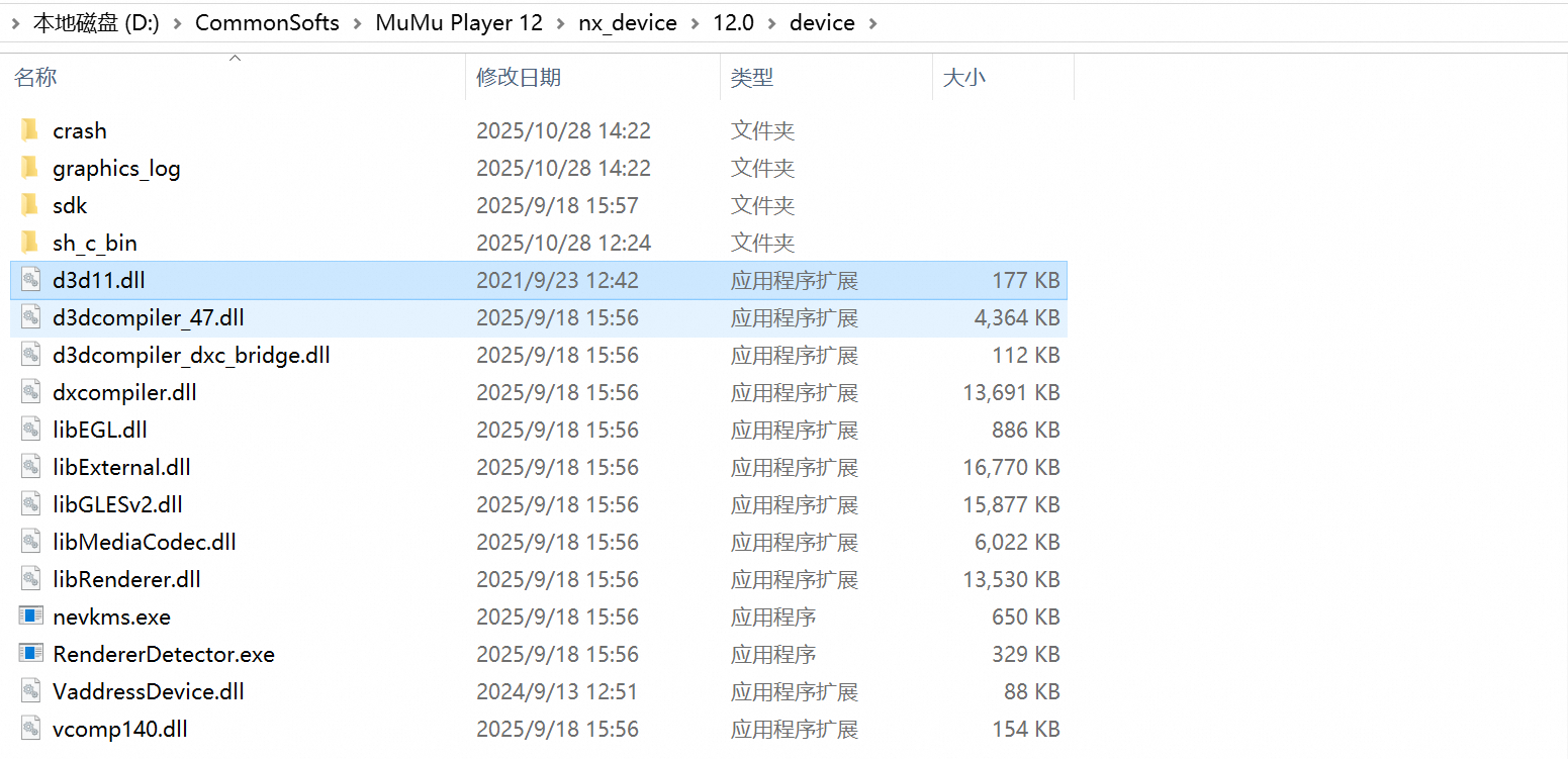 把d3d11.dll文件放到MuMu模拟器文件夹下