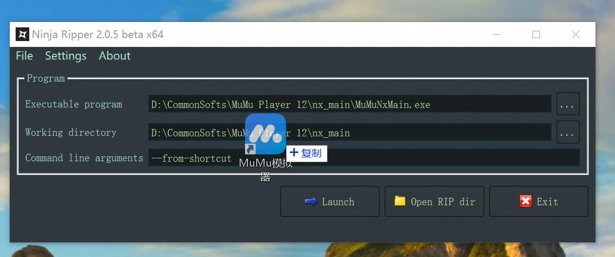 3.把mumu模拟器图标拖到Ninja上,点击Launch,
