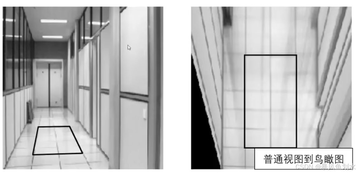 下图是单应性矩阵进行视角变换的示例,左边普通视图至鸟瞰图。