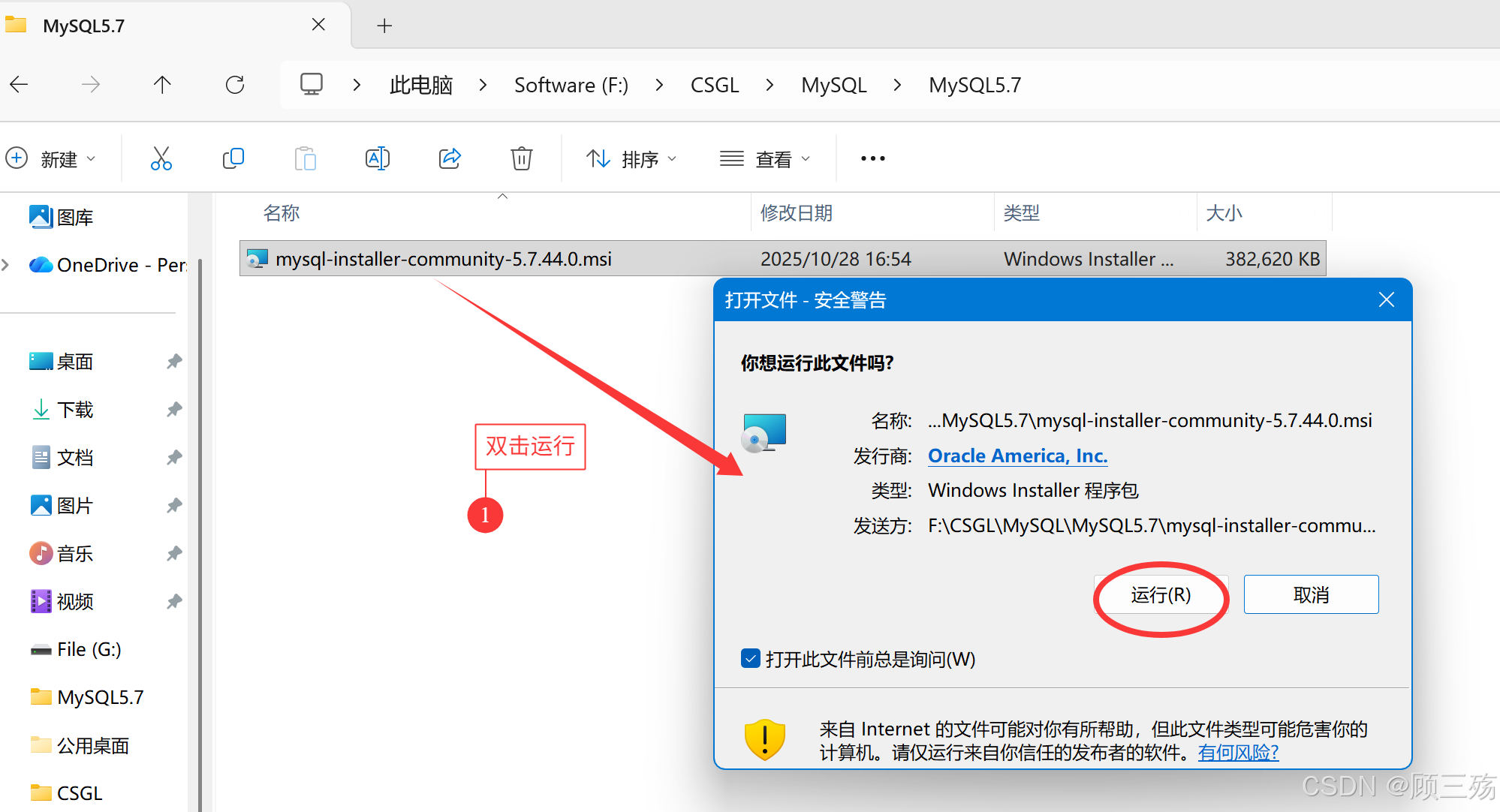 - 示例安装包保存路径:F:\CSGL\MySQL\MySQL5.7\