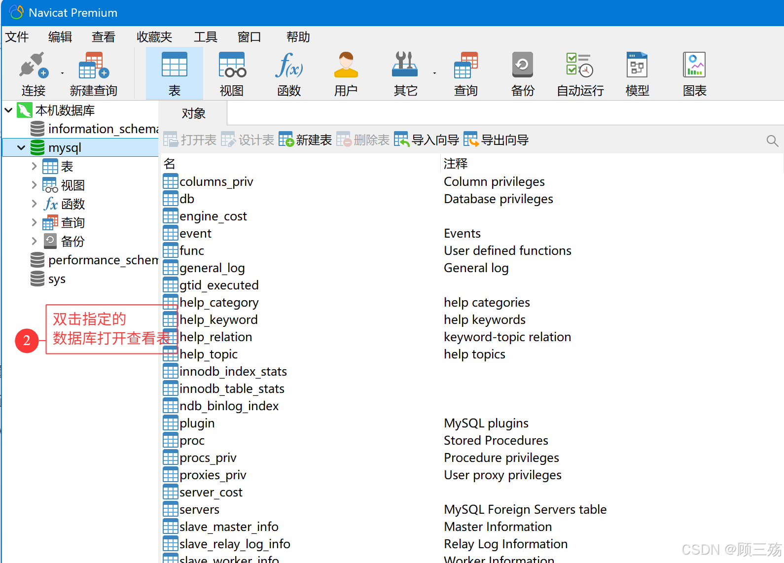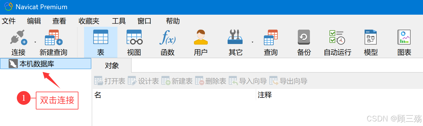- 双击连接名称即可展开并访问数据库对象(如表、视图等)。