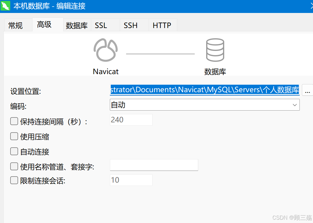 如需进一步设置,可在连接配置窗口的 “高级” 选项卡中调整: