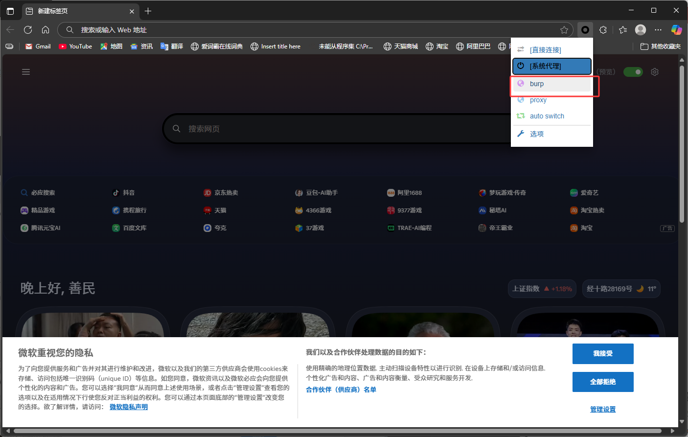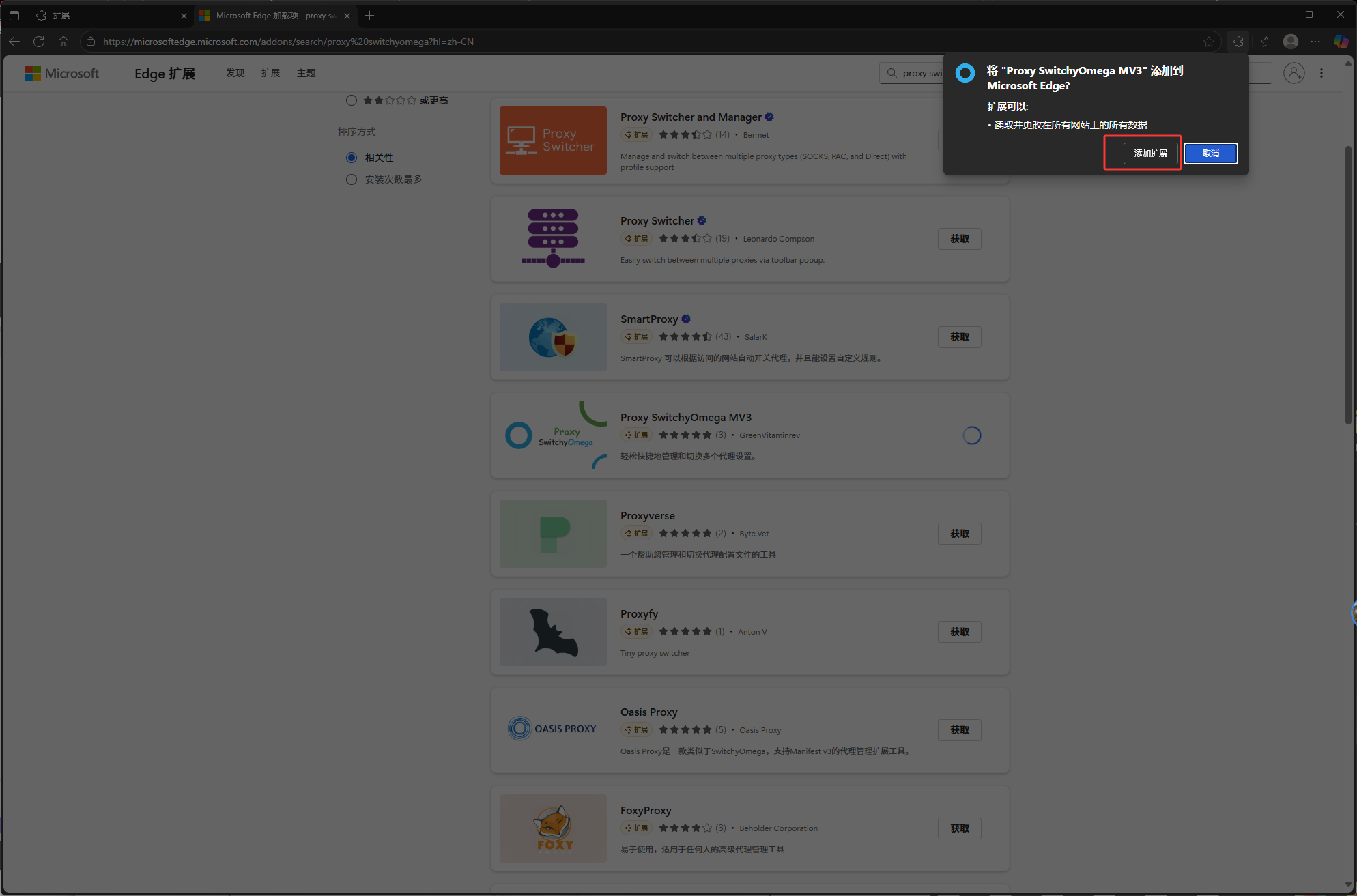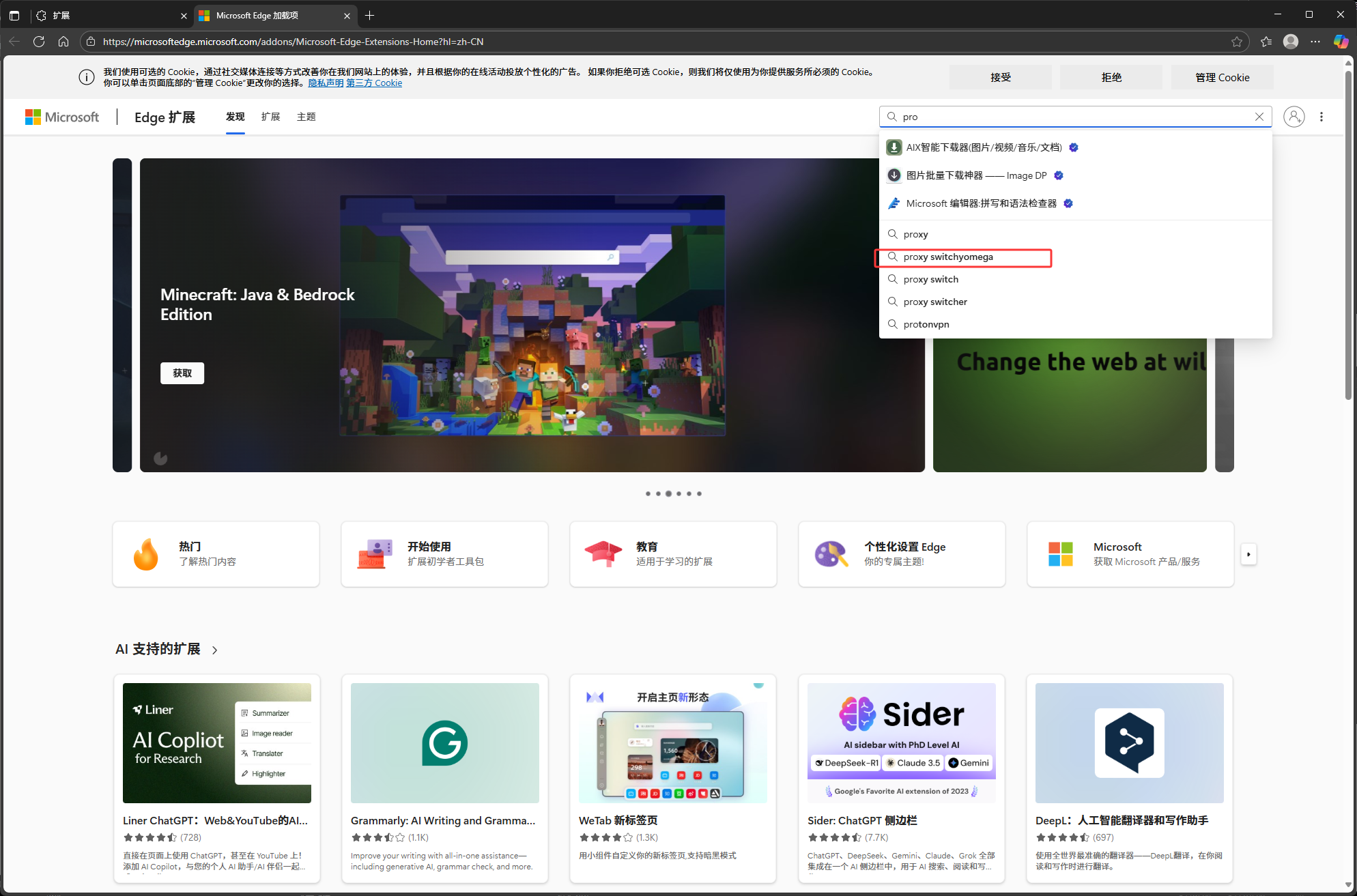 然后来到浏览器,进行代理设置,这里用的MicrosoftEdge浏览器,其它浏览器也都一样,打开浏览器后点击管理扩展