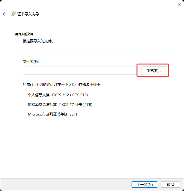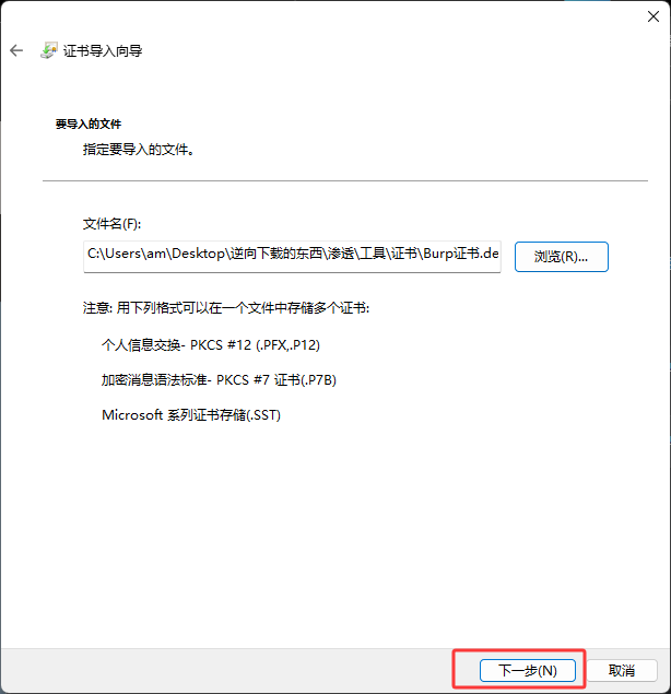 然后如下图红框,这个证书的名字和后缀名,需要我们自己手动写