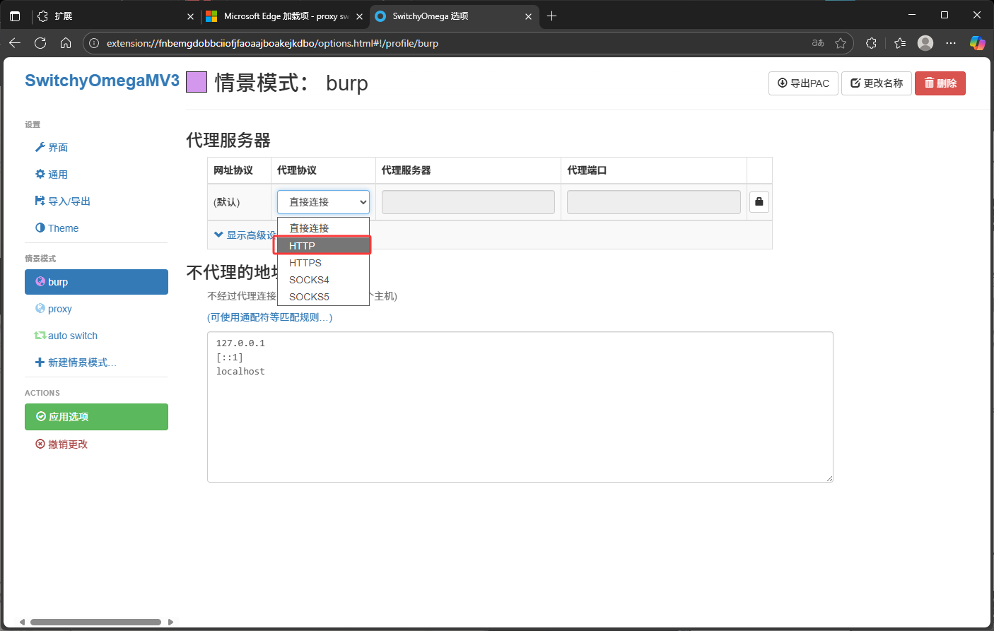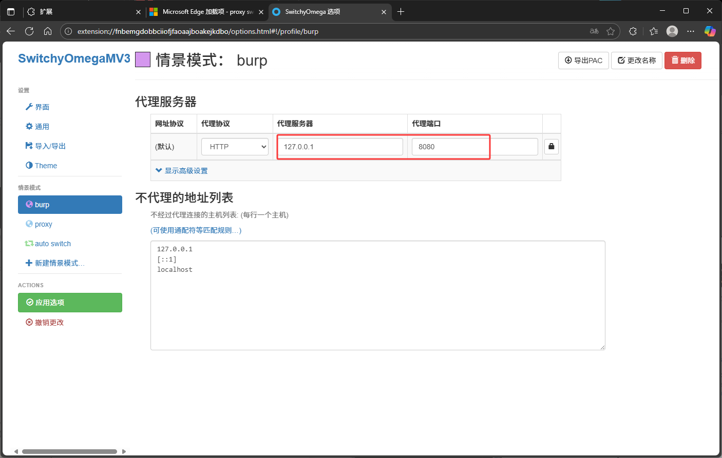然后填写代理服务器和端口,也就是从Burp中看到的