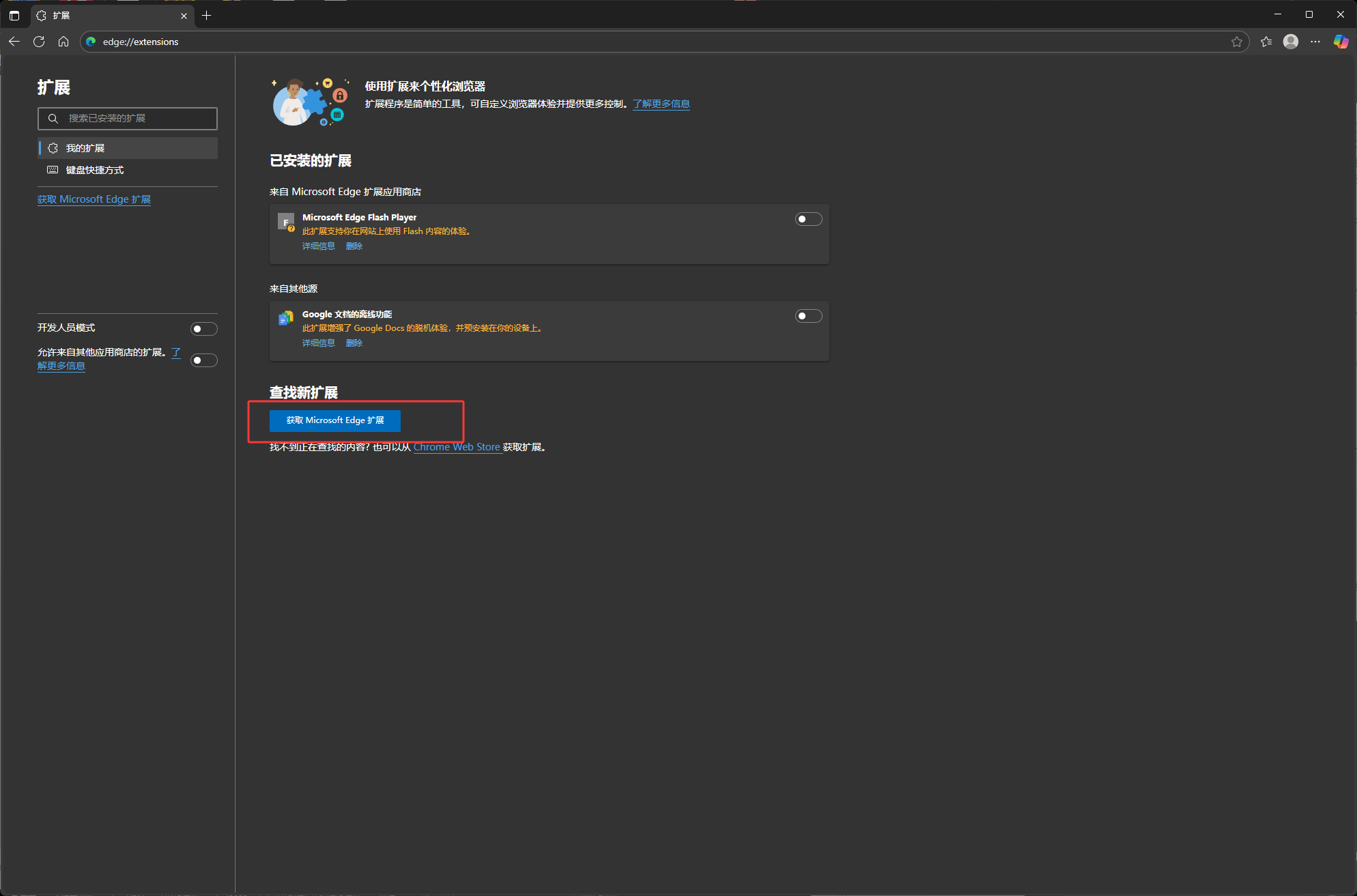 添加之后就可以在浏览器扩展中看到它了,如下图红框,然后鼠标单击下图红框