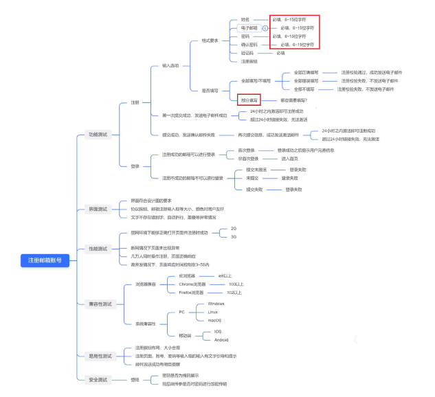以该注册邮箱账号需求为例,我们来设计测试用例。