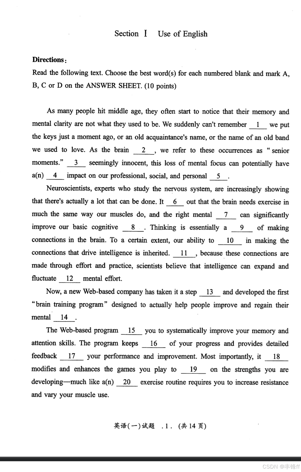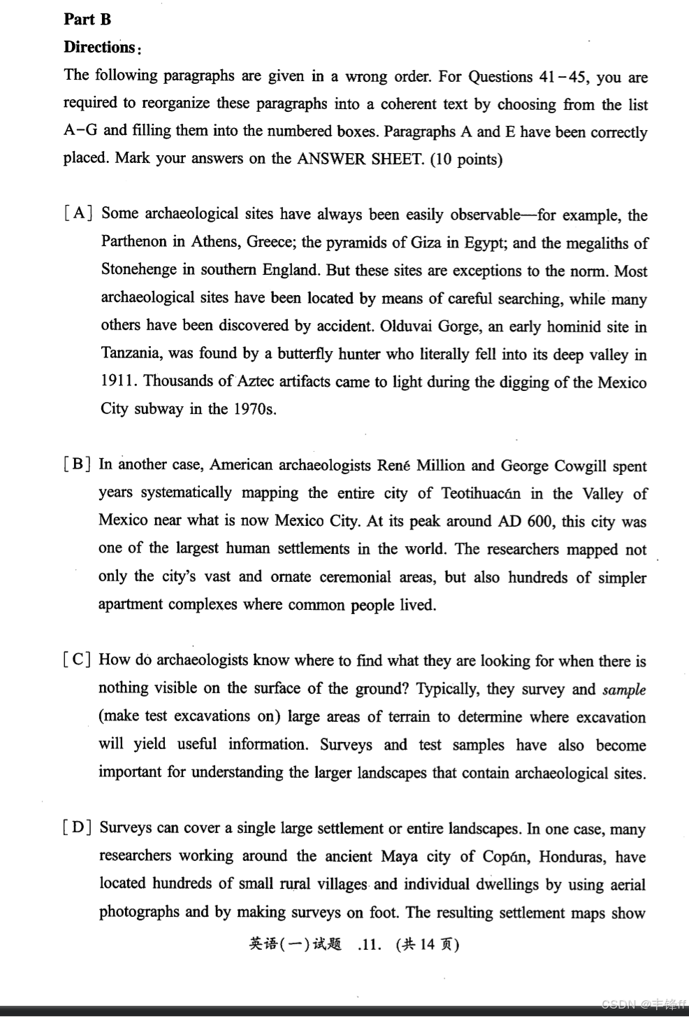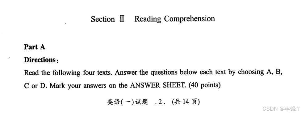 Section I Use of EnglishSection II Reading ComprehensionPart AText 1Text 2Text 3Text 4Part B Part CSection III WritingPart APart B